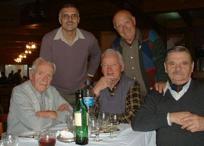 Prvi z leve Rudi Guštin, za njim stoji avtor in slovenski izseljenci na tradicionalnem srečanju ob argentinskem prazniku 25. maja 2003 v društvu Triglav v Buenos Airesu.